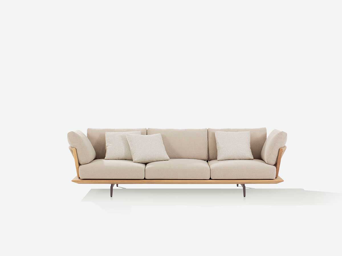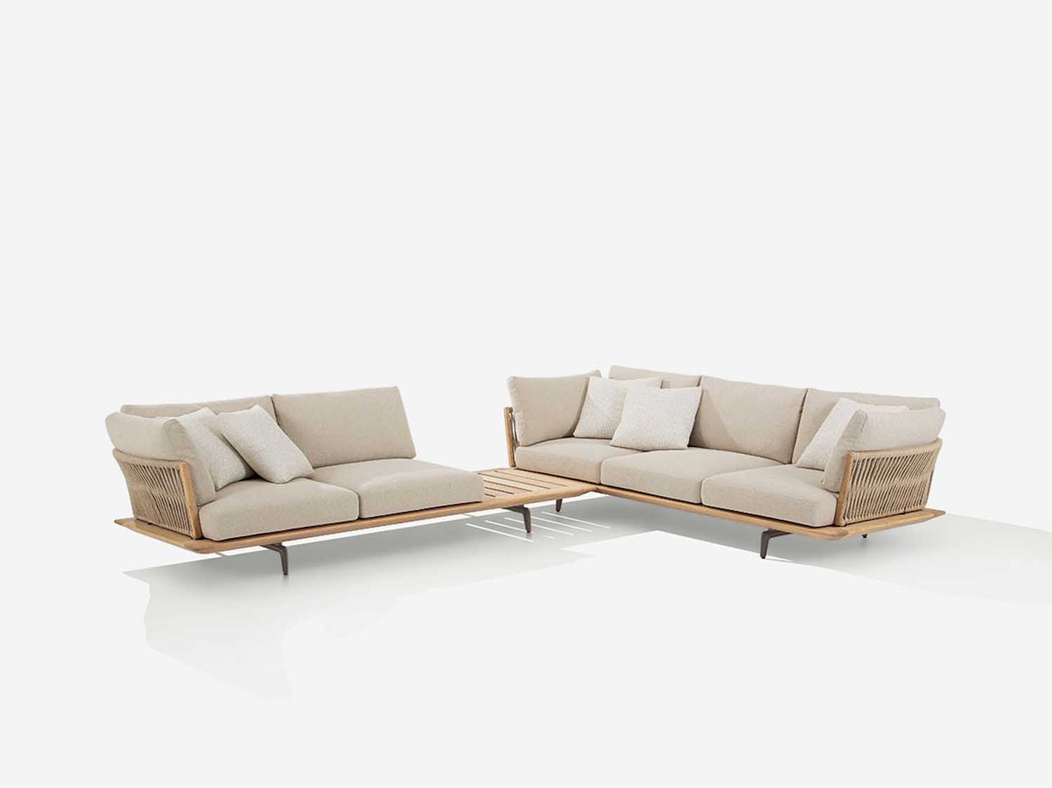 Le canapé modulable Lagoon, conçu par Emmanuel Gallina, s’inspire de l’élégance du monde nautique et des lignes épurées des voiliers. Un projet conçu pour les espaces extérieurs les plus exclusifs, capable d’allier rigueur formelle et hospitalité. La structure légère et raffinée accueille une large assise complétée par un double coussin qui garantit un confort élevé et une polyvalence idéale pour des moments de détente en plein air.